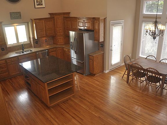 Locate to this exclusive neighborhood for under 400,000! Great space and beautiful well maintained home. Enjoy high-end finishes, stunning kitchen, oversized island, and quick backyard access from four different exits. Or spend time indoors with extra bedroom options to fit your needs! Bonus storage area in third garage and 400+sq.ft. attic. One of the best values in TO (Thousand Oaks) and Park Hill School District. World class pool at your door and resort-style pool just down the street. Come be part of the Friendliest Neighborhood in Kansas City!