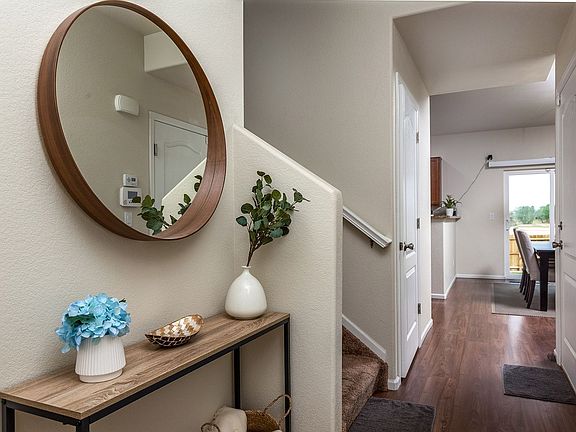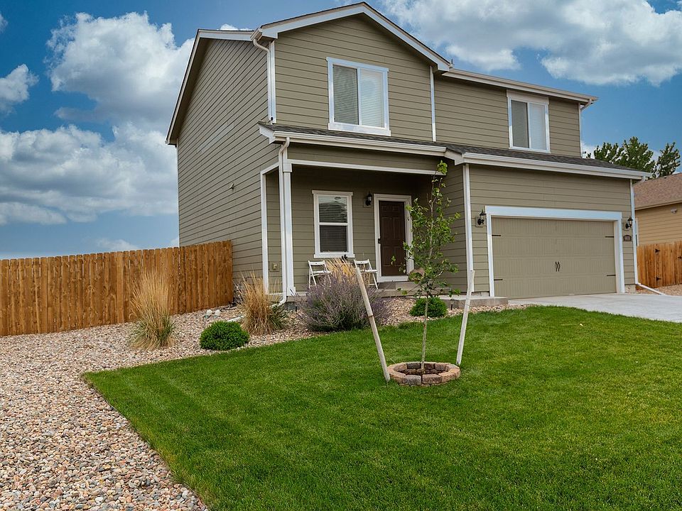 Stunning 2 story home with an open floor plan. The inviting foyer provides a welcoming space with a coat closet and a powder room. The property features 3 bedrooms + a loft, 2.5 bathrooms, and 2 car attached garages. Welcome home to this bright, stunning living and kitchen combo space. The dining area walks out to the fenced-in backyard with a view of the open range. The kitchen features a peninsula-style countertop with laminate flooring for easy maintenance. The upstairs features a large master bedroom with a bathroom en suite with dual vanity and a large walk-in closet. The second and third bedrooms have walk-in closets and share a secondary bathroom with plenty of space. The laundry room is conveniently located upstairs. The additional loft provides extra space for a secondary living/family room or office space.