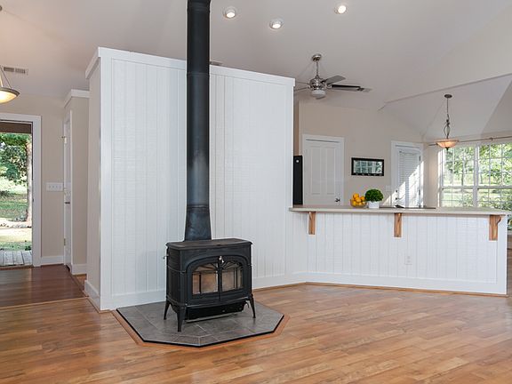 Gorgeous front porch calls to this private retreat! Custom built with many structural upgrades. Vaulted soaring ceilings with large open kitchen. Home features a fantastic Vermont wood burning stove, hickory cabinets, tons of floor to ceiling windows, custom build entertainment center. 30 foot front porch along with heavily wooded lot. Too many custom features to list!