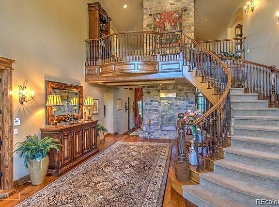 Corporate retreat or Executive Home, Beautiful custom home with views from here to eternity! No cost was spared to create the charm this home has to offer! When you enter the home your met with a dramatic two story entrance that you will not soon forget! The Master is set apart from the other bedrooms, offering a fireplace, a sitting room, Large master bathroom and her and her walk-in closets, Plenty of room for everyone, each bedroom comes with its own bathroom, Main floor study, Exercise area, billiard room, Bar, formal dining room! And the 3000 square foot deck has a view at night of city lights in the distance or just relax and count the stars! 4.78 acres of peaceful bliss, and additional Just 54 minutes to DIA, and easy access to I-25, make this the perfect get away or year round residence! Come take a look!