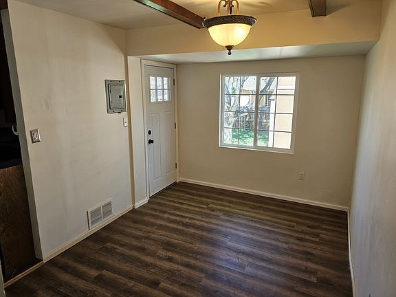 Newly renovated ranch style home. Fully remodeled bathrooms and kitchen. Fresh paint, inside and out, even a steam shower in the master bathroom! Modern appliances, fenced back yard, 10' x 20' insulated barn shed with electric, AC unit, and provision for gas heater. 8' x 20' shed on south side of home with electricity. Newly refinished hardwood floors. Newly sodded grass, Sprinkler system and new light fixtures and door hardware. This lovely property is within blocks of parks, schools, restaurants, and public pool. Renter responsible for gas/electric service bill. Water and trash service are included as long as reasonable water usage is maintained.
