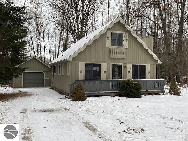 Cute and Cozy is what this 3 bedroom 2 bath chalet is. An excellent recreational area close to Doc & Tom Lake and not far off from M-115. Home has one main floor bedroom and 2 upstairs as well as a detached 1 car garage. HUD owned home. Sold as is and buyer to verify all info.