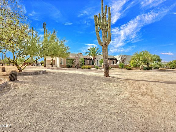 4.5 acre horse property in North Scottsdale/Cave Creek on County Island. Remodeled home on expansive property offering amazing possibilities. Stone and wood flooring throughout, the kitchen features top-of-the-line Blue Star appliances, including a Sub-Zero refrigerator, and granite countertops. Office includes a built-in Fort Knox safe and private patio. All bedrooms are en-suite with large closets. Outside, you'll find a newly built pool and spa, complete with a mist system. Stereo system throughout entire home and exterior. Roof recently recoated in 2024, all windows brand new 2024, two tankless water heaters and an upgraded electrical panel. Main house boasts a spacious bonus room with full kitchen, bathroom and laundry, perfect for guests or multi-generational living. Home includes a new construction 3 car and class A RV garage, plans with builder and pending county approval. 6 stall barn with large turnouts, flexible horse fencing, double wash rack, fly spray misting system, covered shaving area and expansive roping arena. Additional features include a shop/garage for extra storage or parking. Large 20x20 bonus room at barn plumbed for kitchen and bathroom. Horse friendly community with riding path out the front gate.