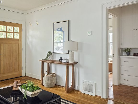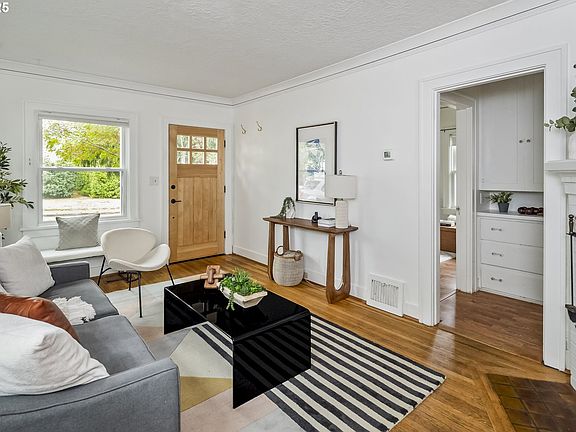 Tucked on a quiet and welcoming street in Southeast Portland, this home blends neighborhood charm with a thoughtful mix of updates and character. Vaulted ceilings and streaming natural light set the tone in the dining room, where French doors open to a private backyard retreat designed for morning coffee or summer dinners outside. The large kitchen, refreshed in 2025 with a generous layout and clean finishes, is built for both connection and everyday ease. A recently updated bathroom adds fresh style, while a wood burning fireplace brings warmth and charm and breezy cross ventilation keeps the home light and comfortable. System improvements include a high efficiency gas furnace, updated electrical panel, updated windows, new roof in 2021, new exterior paint, and a sewer line replacement for lasting peace of mind. A dining room expansion with basement access adds versatility, and the lower level offers plenty of storage space. The vaulted office attached to the garage stands out as an inspiring place for work or creativity, and the garage still accommodates a full size car. Two separate yards provide room to gather, garden, and play, with raised beds in front and a driveway for off street parking. This home balances livability, character, and flexibility in a quiet Southeast setting. [Home Energy Score = 7. HES Report at https://rpt.greenbuildingregistry.com/hes/OR10241658]