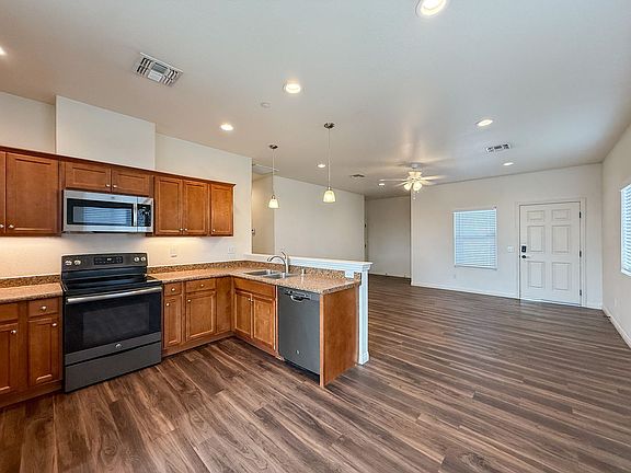 Welcome to this beautiful 3 bedroom 2 bath home with attached two car garage and fenced back yard. Inside you will find LVT flooring throughout living areas and carpet in bedrooms. This house is fully equipped with all kitchen appliances including washer and dryer in garage. This home is all electric with solar panels and trash service included. Additional photos and walkthrough video will be available soon! Photos may be of similar property. Video of similar property also available upon request.