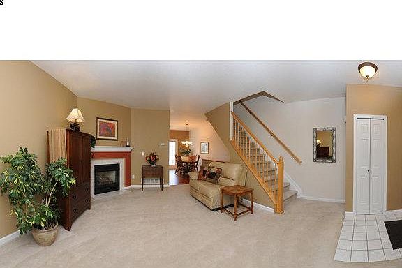 Beautiful, spacious 2 bed, 2.5 bath townhouse in a great neighborhood. New Pergo floors in kitchen & dining area. New door hardware & lights fixtures throughout. Features include open floor plan with gas fireplace in the living room, large unfinished basement, central air-conditioner, one-car garage, new dishwasher, and washer/dryer. HOA covers trash, exterior maintenance, landscaping, snow removal, fitness center, clubhouse, pool, hot tub and greenbelt. Plus - in a cul-de-sac - convenient location to schools, parks, daycare, etc.