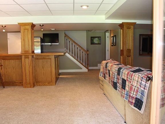 Ranch with open floor plan. 2650 sq. ft. 3 bedrooms, 3 full baths. Finished lower level, extra room, wet bar and walkout to patio. Kitchen with stainless steel appliances, custom oak cabinets. Hardwood floors in kitchen, dining and great room. 2 woodburning fireplaces oak mantel.