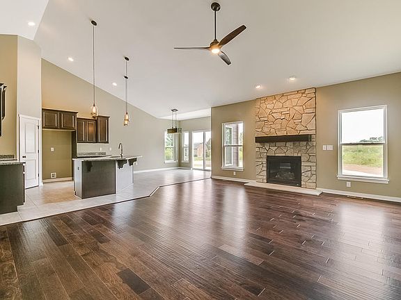 Gorgeous new construction! 4 bedroom, 2 bath ranch home with 3 car garage on 1 acre lot that backs to open area! Awesome space for future outbuilding and located in desirable Coyote Ridge Development. Great location to allow for an easy commute and yet, extremely quiet and peaceful feel! Beautiful concrete work with stamped border on drive, walk and large rear patio. Awesome potential in basement with look out exposure.