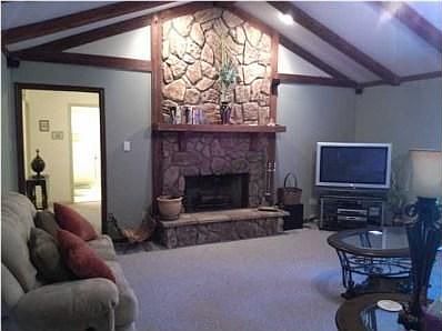 EASY LIVING HOME LOCATED IN CONVENIENT CARRIAGE HILLS SUBDIVISION. CEDAR AND STONE EXTERIOR. ROOMY DEN WITH EYE CATCHING STONE FIREPLACE. COZY EAT-IN KITCHEN PLUS FORMAL DINING ROOM. LARGE MASTER BEDROOM WITH STANDARD AND WALK-IN CLOSET. ANOTHER WALK-IN CLOSET OFF FOYER. BRICK FLOORING IN KITCHEN AND UTILITY ROOM. ALSO BOASTS OF CELLULAR ALARM SYSTEM, WATER FILTRATION SYSTEM, CENTRAL VACUUM SYSTEM, AND SURROUND SOUND SYSTEM WHICH REMAINS. YARD HAS NEWER PRIVACY FENCE, COVERED PARKING, STORAGE BUILDING, AND MANY CAMELLIAS AND OTHER GREAT PLANTS. DRIVEWAY IS BEING RESEALED. BLINDS REMAIN. DRAPERIES & REFRIGERATOR ARE NEGOTIABLE. SOME LIGHT & BATH FIXTURES HAVE BEEN UPDATED.