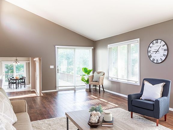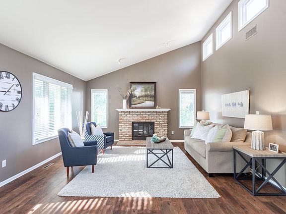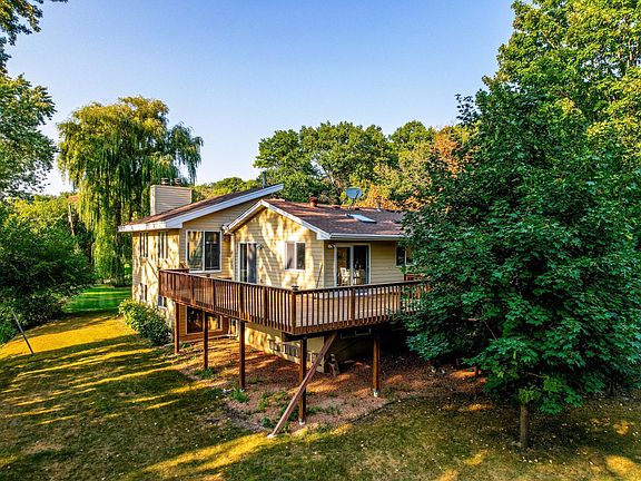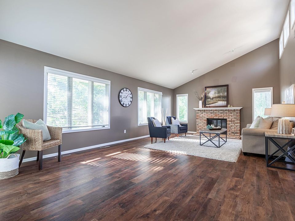 convenient indoor/outdoor entertaining! Vaulted upper lever living room with wood burning fireplace and loads of natural light! The lower level has 3 additional bedrooms, full bath and spacious walk-out family room with 2nd wood burning fireplace to cozy up on the chilly autumn nights! Updates include new furnace ($7,000), new Culligan water filter and softener ($4,000) washer, dryer, main level flooring, new lower level carpet and more!