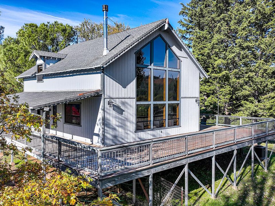 This property was lovingly built and lived in by just one family. This thoughtfully crafted home features unique details including the wood stove surround built with river rocks collected from the local creek, hand-laid oak floors, and corrugated metal around the kitchen island from the local Giannini Ranch, all highlighting the love invested in its creation. The house is strategically set up so you can enter the grand living room with soaring two-story cathedral ceilings & windows or go into the mud/laundry room for easy cleanup or directly access the dream kitchen with a walk-around granite island, cheery blue walls, and abundant storage. The master bedroom is conveniently situated on the main floor, and the expansive deckcomplete with a hot tubwraps the house. Additional amenities include RV parking with full water & electricity, a separate generator-ready electrical panel, an oversized garage, completely fenced around the house, and 11.32 acres are ideal for animals. Unique features such as an electric gate, driveway alarm, fire hose hook-up w/ water tank, water softener, mini-split upstairs & central heat & air downstairs, and laundry chute, make this property truly exceptional.