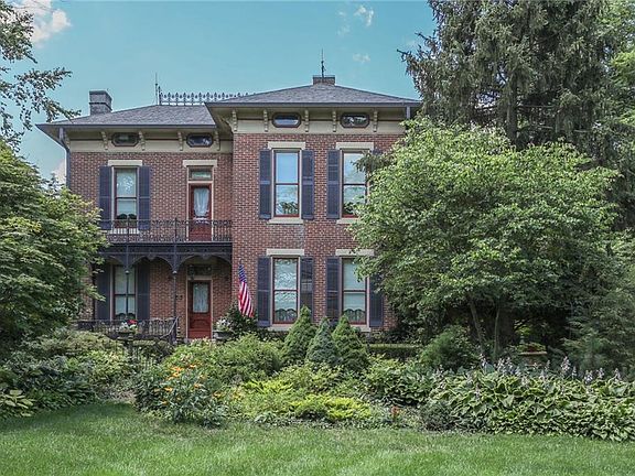 Stately 1868 Italianate Home located on 3 acres of beautiful collection of Indiana unique flower gardens and ornamental trees beyond belief!! Home features spacious rooms thru-out w /raised ceilings and hardwood floors plus Kit updated in 2002 w/Corian counters and custom cabinets plus quality wood trim thru-out home Enjoy evenings on multiple covered porches!! Note the 2 sty 60x34 barn plus 15x12 summer house 13x11 milkhouse 13x12 smoke house and 18x6 encl porch w/tile floors You cannot duplicate this tranquil setting!! List of updated features available. All lawn decorations and fixtures are excluded