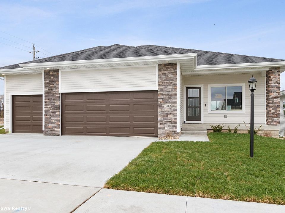Have you been waiting for that Detached Townhome in the perfect location? This ELKPORT Ranch with a 3car garage and incredible views of the golf course from your covered deck, will get you excited A gorgeous full stone fireplace greets you as you enter the spacious, open floor plan of this home. LVP flooring throughout the kitchen, great room, entry, hall, dropzone and laundry. The Kitchen features white cabinets, pantry, island, GE stainless appliances & quartz countertops. The spacious Master Suite includes tile shower, double vanities, and a walk-in closet. The laundry and drop zone is conveniently located off the attached garage and has a bench hooks. Plus, the finished lower level offers an 18 x 24 family room, a 3rd bedroom and 3rd Bath for a total finish of 2382 sqft.