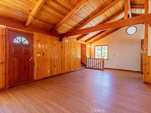 Inside, you'll find even more to adore. The highlight of the living room is the cozy fireplace and the high wood-beamed ceiling creates an open and airy atmosphere, complemented by the warmth of the pine tongue and groove wood walls. These charming details add a rustic touch to the home's overall ambiance.
