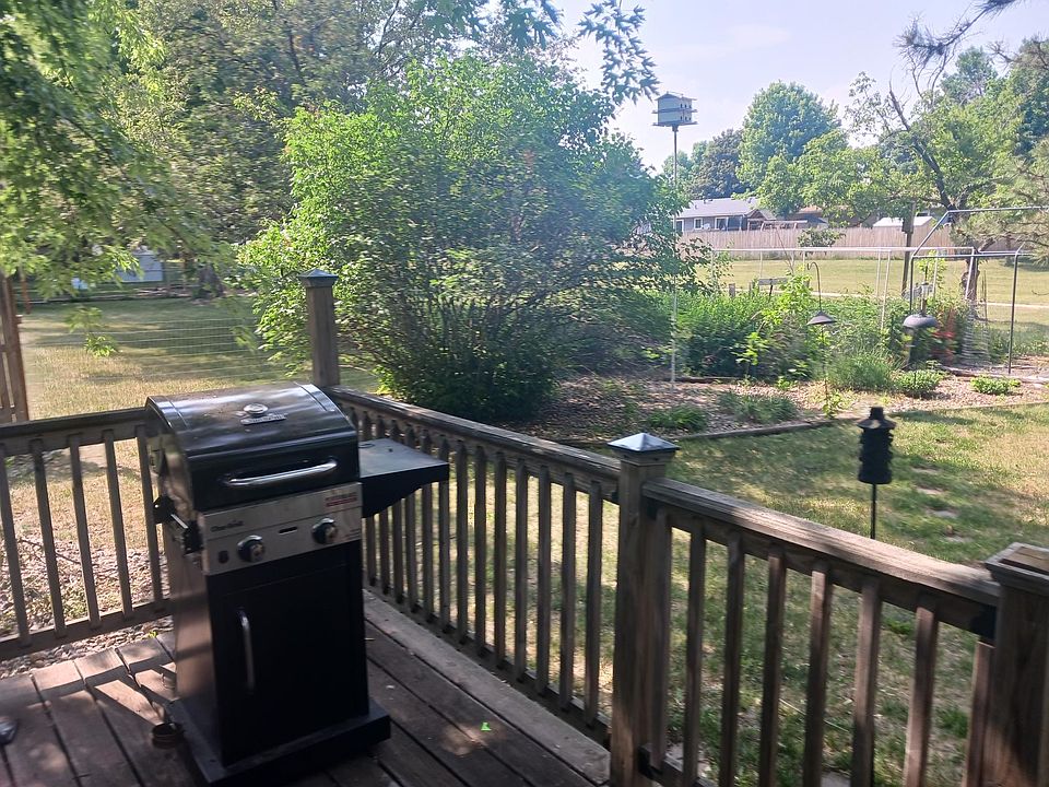Very nice home with new carpet solar energy for low utilities three season room walk in tub jacuzzi and more two totally new bed frames and mattresses couch two weeks old family room in basement with wood burning stove two stall attached garage custom built shed in backyard nice backyard deck very private. Totally furnished with 75" TV Renter is responsible for all utilities and lawn care and snow removal