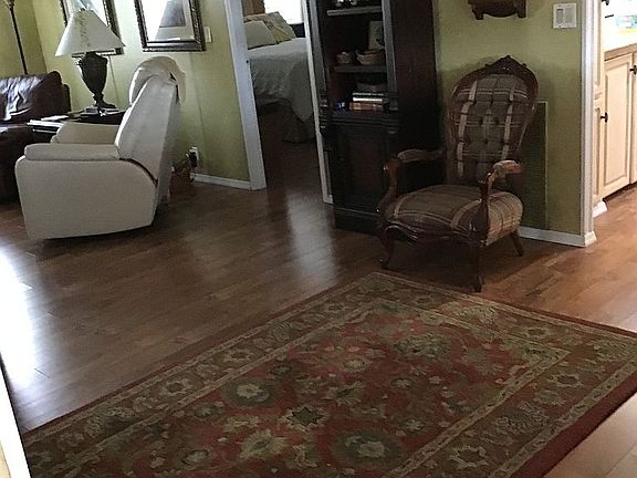 Welcome home to this large, impeccably maintained , move in ready home in highly sought after Trailer Estates on Sarasota Bay. Enter the gate into your private outdoor lanai area - the perfect spot for your morning coffee. Through the front door into the expansive living room complete with an entry closet, lovely leather reclining l seating and a large electric fireplace. Imagine retreating to the large main bedroom complete with glass atrium doors and ensuite accented with a garden tub and stained glass window. Your guests will love the privacy of the split plan layout of two bedrooms and private bath. The spacious kitchen has plenty of room to cook with friends and family. Entertaining is a breeze in the attached vinyl window/screened lanai complete with electric fireplace and air conditioner. Imagine being able to securely store your vehicle, boat, golf cart, etc. in the spacious attached garage. Even more area is available in the storage building at the back of the property. Parking is more than ample including a covered carport area. Outdoor landscaping is maintenance free with rock, cement drive and pavers. Home is being sold completely furnished with the exception of a few sentimental items. We invite you to let us share3 our love of this wonderful home with you.