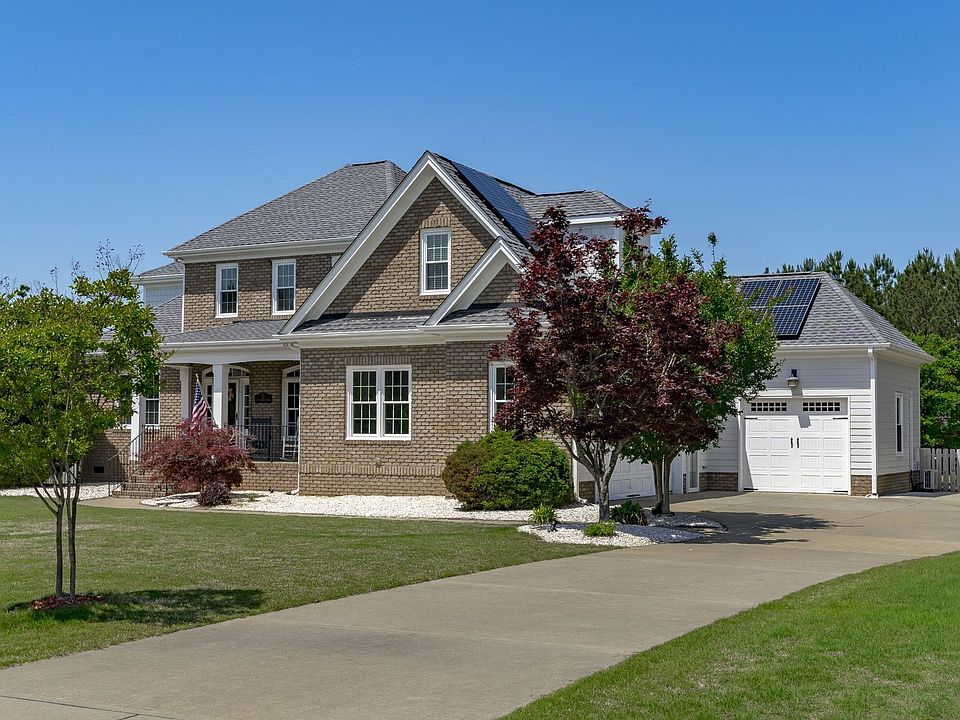 Showings 5/5. Experience luxury living in this stately brick-front 2-story home in the heart of Fuquay-Varina. This exquisite home features: rare 3-car garage, deep 0.69-acre lot, & solar panels installed. The main living level boasts hardwood floors throughout. Spacious 1st floor Primary Suite w/ tray ceiling & custom headboard wall. Main floor Laundry Room. The chef's Kitchen is sure to impress w/ walk-in pantry, SS appliances including wall oven & microwave, granite countertops, gleaming white cabinetry, coffee/dry bar area, & glass front display shelves. Elegant wainscoting in the Family Room adds a touch of sophistication & warmth, complete w/ a gas log fireplace. The home also features a Formal Dining room w/ Butler Pantry. Upstairs, there are 3 additional bedrooms, each w/ walk-in closets, 1 w/ an attached bath. The huge Bonus Room upstairs has an attached large craft/hobby/workout/office/media room, perfect for work or play. The screened back porch, paver patio w/ Outdoor Kitchen & fire pit are perfect for enjoying outdoor living & ideal for entertaining. Ask for features/seller upgrades list!