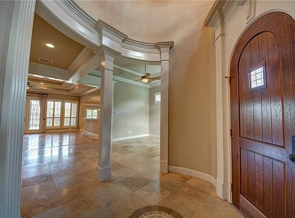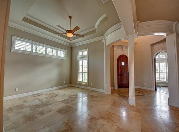 Gorgeous custom built 3 bedroom home in gated neighborhood. Enter this home to soaring ceilings, travertine floors & designer touches throughout. Open floor plan. Gourmet kitchen with wolf cooktop, lots of cabinet space & large island. Family room includes custom stone fireplace & great views of the backyard. Large master suite with walk in closet. Third bedroom can also be used as optional study. Numerous upgrades include new roof in 2017, new 16 seer HVAC, plantation shutters & much more. Oversized 3 car garage. Conveniently located close to highway, cultural district & joint reserve base. Home is immaculate & move in ready.Bedroom or study - shelves in office can be removed to make a closet.