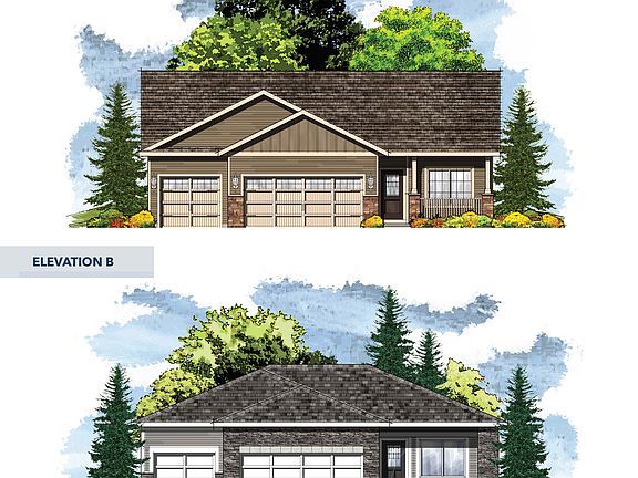 The Melrose plan offers three bedrooms, two baths and a three-car garage. On the main level you'll walk directly into the open-concept kitchen and great room which leads to a large deck. You'll also find three bedrooms and two baths on the main level, as well as a spacious laundry room. The lower level can also feature a fourth bedroom, additional family room, bath and patio when built on a walkout home site. All lower level finish options are available.