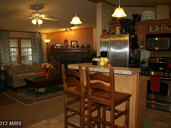 Lovely double wide mobile home built in 2007! Eat in kitchen w/SS appliances, propane gas range, built in microwave & center island! Large laundry/Storage/mud room! Cozy family room w/ wood burning fireplace off kitchen! 3 Bedrooms plus an additional living area/4th BR! Master BR w/ walk in closet & private bath. Buyer must qualify with the park before purchase can be completed. HWD CTY SCHOOLS
