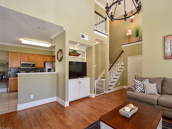 Great home located in popular Clemmons neighborhood - will not last long! Main living area includes two story living room open to kitchen & dining area. Kitchen features granite countertops, stainless appliances and gorgeous cabinets. Main level master bedroom, two spacious bedrooms on upper level. Crown molding, neutral paint colors & lots of natural light throughout. Charming covered side porch, oversized driveway space at garage and nice backyard. So many custom touches. See pics!