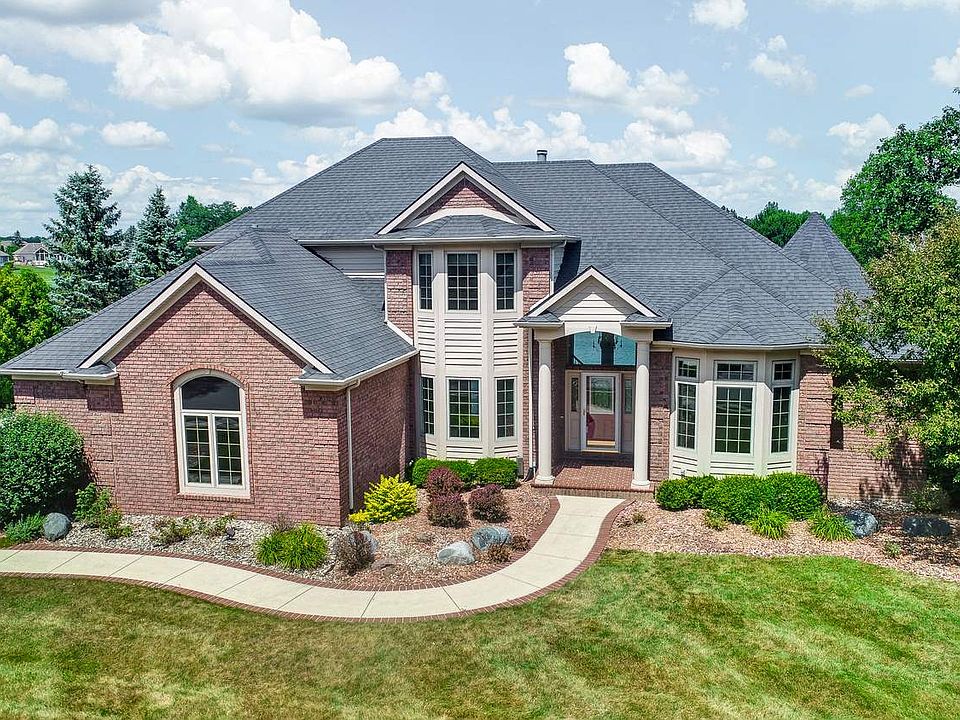 Stunning lot with a pond view and golf course(along 16th Fairway) in rear. This two story home shows owner pride throughout! Walking up to this all brick front home you will fall in love with the spacious lot & professional landscaping. As you enter the foyer you are greeted with high ceiling, wood floors and columns. French doors into the front office with built-ins & oversized dining room with crown molding. Fabulous views as you enter the Great Room with high ceilings, crown molding and view of the pond and golf course! The GR has a custom mantel for the gas two-way fireplace. The Hearth room opens to the KT & NK which feature tile flooring, Granite counters & many cabinets for additional storage. Enjoy cookouts with the gas grill on the back deck and gazebo just off the nk. Master is on the main level offering high ceilings & reading nook. Master bath has title flooring, double vanity, jet tub, walk-in closet and separate area for shower. 3 spacious bedrooms with walk-in closets and loft on the upper level. Two bedrooms share a jack-n-jill bath with their own vanity area. The third bedroom has it's own full bath. The full daylight finished basement is great for entertaining! It features a fifth bedroom. Full bath with jacuzzi step-in tub. Additional room for workout, crafts, an office or storage. Wet bar with refrigerator, numerous cabinets and counterspace. There is plenty of room for a theatre or pool table. Wired for sound system, bay window area for additional seating and additional storage in the mechanical room. Quality home that you will not want to miss! Irrigation system has separate meter. Home is wired for security system. Double furnaces for more balanced heating & cooling throughout. Humidifier & cleaner on furnace and reverse osmosis's system.