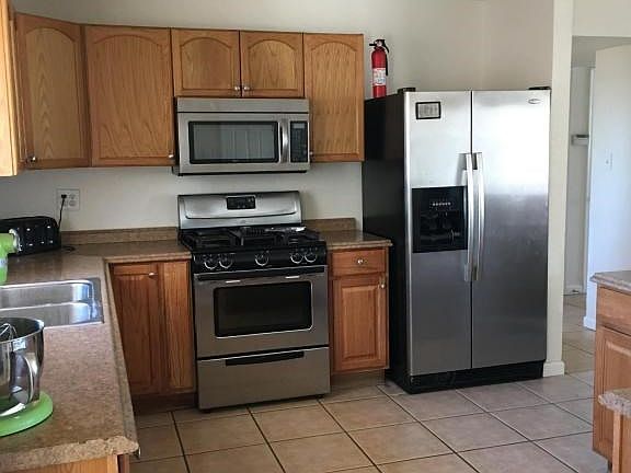 Great updated home, huge family room w fireplace, nice kitchen open to living & dining areas, stainless steel appliances, breakfast bar, ceramic tile throughout, giant laundry/pantry/storage room, great closets, updated baths, double wide driveway. Good-sized walled side and back yard. Will deliver professionally cleaned. Community pool available w/ membership, nearby neighborhood park and playground.
