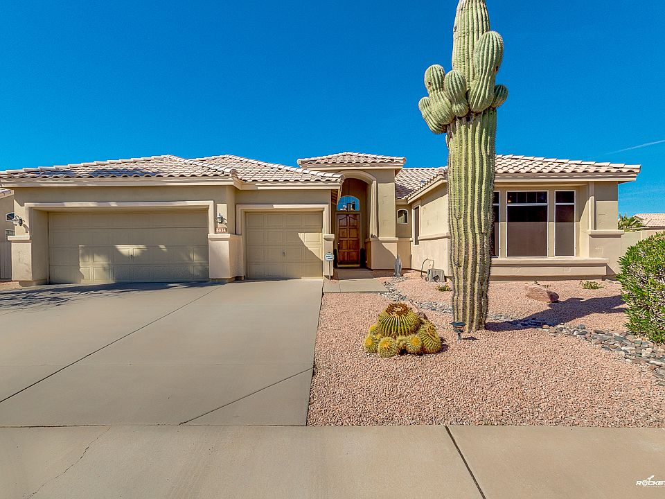 Wow! Truly impressive 3 bed plus a den, 2 bath property located in Mesa is now available. Featuring low maintenance desert landscaping and 3 car garage. The spacious kitchen includes recessed lighting, ample cabinetry, granite countertops, large island with breakfast bar, and stainless steel appliances. Inside the majestic master suite you will find a full bath with his and her sinks, separate tub, step-in shower, walk-in closet, and private exit. Amazing backyard is comprised of a grassy area perfect for kids to play, gravel landscaping, covered patio, storage shed, gazebo with seating area, and a refreshing blue pool perfect for summer days. Hurry to see this fabulous home. Schedule a showing today!