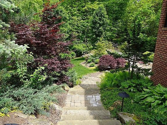 This sophisticated all brick home is nestled on 2 WOODED PARCELS totaling .73A in Nobles Pond. Custom built in 2006 by Alpha Construction, every finish & amenity was thoughtfully selected. The home offers 4,100 total sqft of prime living space, 4 BRs & 4.5 baths, with a first floor master suite. A two-story foyer leads to an elegant formal dining room & study with vaulted ceiling. The two-story great room features a full wall of windows & oversized granite fireplace. The gourmet kitchen dazzles with gorgeous granite counter tops, upscale stainless appliances, an eat-in area & walk-in butler's pantry/bar. Enjoy your morning coffee in the adjacent sitting room with access to a Trex balcony. Upstairs, you'll find two large ensuite bedrooms each with walk-in closets & private full bath. The finished walk-out lower level offers two recreation areas, a full bath & large bedroom. Outdoor features include a tiered cobblestone patio, water feature & firepit nestled in a private natural wooded setting with extensive landscaping. The home offers Brazilian cherry hardwood flooring, artful light fixtures & Schrock cabinetry. Recently painted & carpeted throughout. This fine home is located only moments from shopping and dining at Nobles Pond MarketPlace.