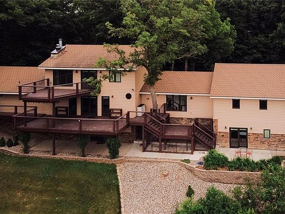 MOTIVATED SELLER JUST MADE A MAJOR PRICE IMPROVEMENT! Check out this waterfront retreat! Enjoy one of the multiple decks with a beautiful lake and countryside view. Panorama West Golf Course is right around the corner, for a quick golf cart ride over. This property sits on the West side, next to Jones Cove at Lake Panorama. Home features many exterior and interior updates, including steel seamless siding, steel asphalt shingles, addition of 4 seasons sun room, 2 HVAC systems, windows and doors and many more updates. Pet friendly property with built in dog kennel under the main deck. Walk or Drive on the new concrete path to enjoy the new private beach, patio with grill area, landscaping and dock.