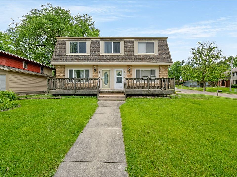 Well maintained all brick duplex w aluminum trim on facia soffit and windows available in NW Des Moines! Unit 6616 is tenant occupied with a long term tenant and offers a living room, eat in kitchen and a half bathroom on main level. The second floor has two bedrooms and a full bathroom. Basement is partially finished. Unit 6614 offers an eat in kitchen and spacious living room space on main level. Second level has three bedrooms and a full bathroom. Lower level is partially finished offering living room space with a full view window and a 3/4 bath. Laundry (washer and dryer included) is located in the lower level on both sides. Front porch and back patio on both sides of the duplex. 2 car detached garage and one extra parking space pad. 3 year old roof.