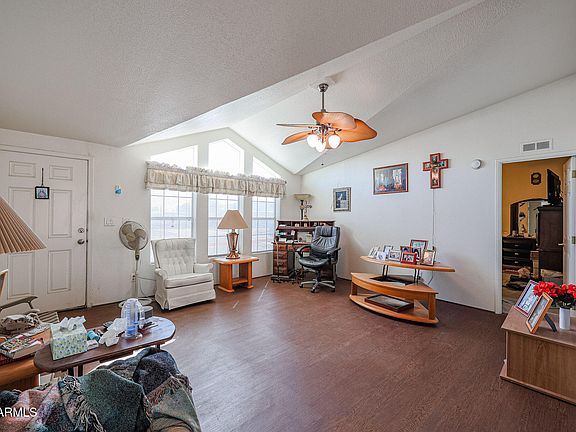 Welcome to 6614 W Mary Jane Ln, a charming mobile home on owned land in Glendale! This home offers an abundance of space for all your outdoor toys, making it perfect for adventure seekers. Step inside to discover vaulted ceilings that create an open, airy feel throughout. The bright kitchen is a chef's delight, featuring a large island that's perfect for meal prep and gatherings. Cozy up in the living room by the fireplace, adding warmth and ambiance to your evenings. Don't miss the opportunity to make this versatile and spacious property your own!