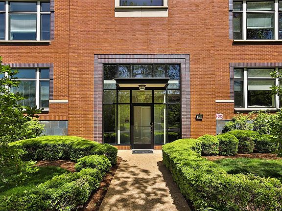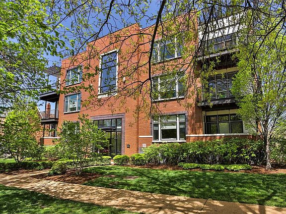 This immaculate, end unit Condominium is located in the desirable DeMun, Clayton area. The brick building is newer, pristine, and only has 9 units in the building. Living space offers 9 foot ceilings and large high-end, wood casement windows bringing beautiful natural light to the space. (Black out shades with remote, for master and family room are included in the sale) Amenities include: Open spacious floor plan, roomy entry and powder room, wood flooring, chefs kitchen, stainless appliances, gas cook top, ample granite counter space, breakfast island, new light fixtures, Large master bath with built-ins, walk-in organized master closet, double sinks, granite counters, large laundry room with washer/dryer, (extra storage bookcases excluded in laundry room), plenty of closets and storage, fireplace, and charming deck overlooking mature trees. There are 2 garage spaces, (spots 8 & 9) with storage all in front of, & the sides of parking. Ass. says you can have electric grill on deck! Location: Corner Location, End Unit