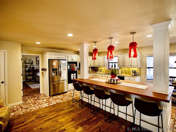 Jenks SE Schools on .52 acre. at 101st & Sheridan. Open Concept Granite kitchen, brick floor in kitchen. 2 living rooms, formal dining & master suite on 1st level. Game + 3 beds up. Outbuilding & lighted sport court with basket ball goal in backyard. Pictures to follow