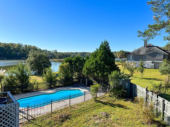 Welcome to the wonderful community of Meggett, South Carolina, where the ''small-town-feel'' and the ''country-living'' are at its finest. Drive down the main street, past Town Hall and the pretty park and fountain, and feel yourself settling into the quiet and beautiful surroundings of the area. Cross over Meggett Creek, surrounded by ''big skies'' and endless marsh views, and onto Ethel Post Office Road, all the while taking notice of the colors of the landscape, the lovely views, large lots and gorgeous homes that surround you. This beautiful country oasis is expected to impress! Sitting on 1 ACRE, this stunning LAKEFRONT property boasts of an IN-GROUND POOL, small dock, horse-shoe driveway, elevated construction and double back porches. Pull into the horseshoe drive at this prettyhome and take in the smell of the crisp, clean air.. feel the breeze and sun on your face .. take a moment to "take in" the quiet. Walk up the steps, turn around to take in the front views, open the door and step into this one-owner home, and take a tour of the 3 bedrooms, 3 full baths, and 1896 square feet, with gorgeous lake views from every room! The home is wonderfully unique and is full of potential with it's: DUAL PRIMARY BEDROOMS with a sitting area off downstairs bedroom, separate dining room, eat-in kitchen and open concept living with the kitchen open to the family room with its wood-burning fireplace. As you walk from room to room, know that the home needs updating, but could be an amazing place to call, "home." Take in the views from the double back porches. Take a moment to sit on the swing and listen to the birds singing and the fish jumping. Such a truly serene place to someday call, HOME!