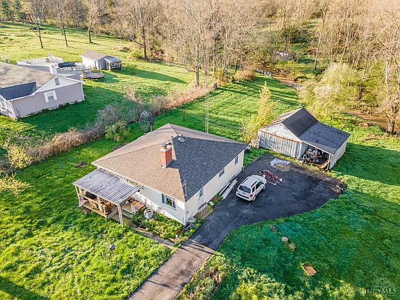 Charming Ranch with MANY upgrades! On 8.843 rolling acres, with thriving, stocked pond! 3 BR/1 BA. One bedroom could be a flex room. Large updated bathroom, with new shower insert, handicap accessible, new toilet. New siding 2023. New roof/gutters 2023, new chimney. New flooring on main level! New propane furnace 2020. Everdry/new sump pump 2022! Updated windows. Blacktop driveway. 24x40ft Barn in yard behind creek. Great, sound home - Just needs your cosmetic touches!