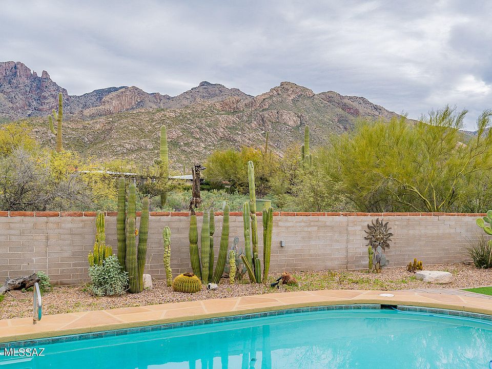 Nestled in the heart of the Catalina Foothills within the highly sought-after Coronado Foothills Estates, this enchanting Classic Burnt Adobe territorial home embodies the essence of Tucson lifestyle. Situated on nearly an acre of desert landscape, every corner of this 4 bedroom, 2 bathroom home is suffused with natural light and boasts breathtaking panoramic views of iconic Finger Rock, Catalinas, Rincons, and the twinkling city lights. Kitchen adorned with Talavera tile, seamlessly flows into the family room, offering effortless access to the covered back patio with and the sparkling pool, fully fenced backyard with breathtaking mountain views. The large artist's studio boundless opportunities for creative endeavors. With a flat driveway and guest parking spaces, welcoming friends and family is effortless. Conveniently located within the esteemed Catalina Foothills school district, and with easy access to Finger Rock Trail, La Encantada, and La Paloma Country Club, mall, fine dining and much more... this home offers the perfect blend of serenity and convenience. Whether it's the allure of the natural desert landscape, the proximity to essential amenities, or the vibrant Catalina Foothills real estate market, this home isn't just a place to liveit's a lifestyle to embrace. Don't miss your chance to make it yours.