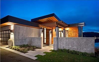 A Modern Architectural Masterpiece on Lake Washington. Concrete, wood, and steel embrace walls of glass with 105