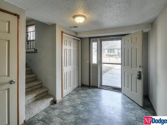 GREAT BEGINNINGS start with this adorable home located in the Ralston School District. As you walk into the home, you will be greeted with an entry way which leads you to a flex room, where you can set up a home office or hobby room. Heading upstairs, main floor is highlighted with new carpet in the family room and new paint. The family room offers a large, vinyl window allowing for natural light and the space to entertain family and friends. Just off the family room, the sizeable kitchen with new paint, newer appliances, luxury vinyl tile flooring, and plenty of space for dining too! It also has a vinyl patio door that leads you to the backyard. Heading up the stairs, you will find 2 secondary bedrooms with new carpet & are conveniently located near the hallway full bath, which has newer tile flooring. Savor in the primary bedroom that offers its own half bath. The unfinished lower level is set up for a future expansion. 2-10 Home warranty included.