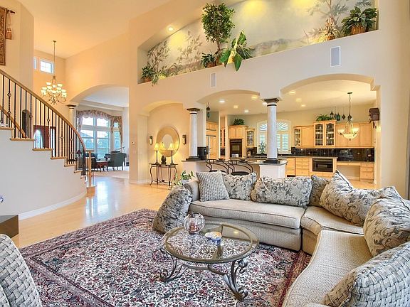- Interior Features: Open Floor Plan, Kitchen Island, Master Bath, Master Suite, Security Entrance, Window Coverings, Pantry, Exterior Basement Entrance, Storm Windows, Exercise Room, Steam Room
