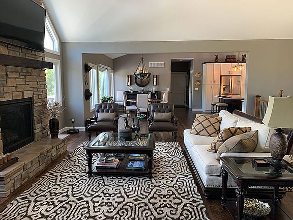 Private lake front living in 2-year-old home on the 26 mm of the Osage Arm at the back of very quiet cove. Perfect for boating, kayaking and paddle boarding. 3734 sq ft on 2 levels each with a massive deck, new boat dock. 122 ft of lake front. Flat driveway into the main level. 2 – 24’ X 24’ garages: 2 car garage on main level. 1 car garage with extra space (currently used as home gym) on lower level. 3 bedrooms 4 baths. Each bedroom has it’s own bath and walk-in closets. Stone gas fireplaces on both levels. Quartz tops throughout including laundry room. Beautiful large kitchen with stainless steel appliances, beverage cooler, double ovens, gas range, dishwasher, and microwave. Large laundry room with quartz topped laundry sink. Lower-level wet bar with copper sink and attractive backsplash. Main level has high end solid hickory wood floors. Split system HVAC electric with heat pump. Lower level, new dock and extensive landscaping along with retaining wall, paver path, stairway and lighting on lakeside completed August 2021. Main access via State Rd KK. All furniture which is high quality in like new condition and most decor included. Contact Annie Faulstich, Lake Front Living Realty at 573-216-4350.