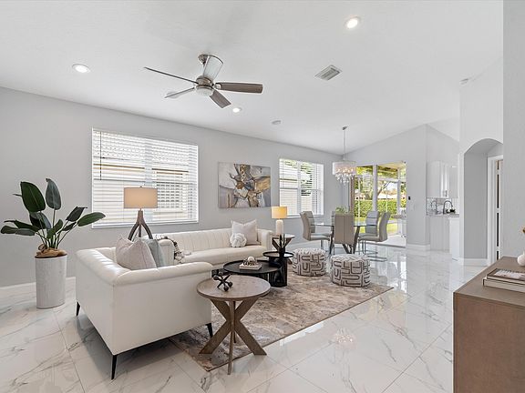 Renovated from top to bottom! BRAND NEW ROOF! 3 bedrooms, 2 full baths, 2 car garage. Gorgeous kitchen with quartz counters, white shaker soft close cabinets, brand-new stainless-steel appliances. Split bedroom plan offers you and your guest privacy. Impressive tile floors throughout living areas. High ceilings, 7'' baseboards, high end laminate flooring in bedrooms. High hat lighting. Designer light fixtures. Covered screened patio. Villa Borghese is a very active 55+ guard-gated community that is beautifully maintained! Gorgeous clubhouse, that was recently renovated. Very active with tons of activities, clubs, shows & entertainment. Resort style pool and spa, pickleball, bocce ball, and 5 har-tru tennis courts and so much more! Don't miss out!
