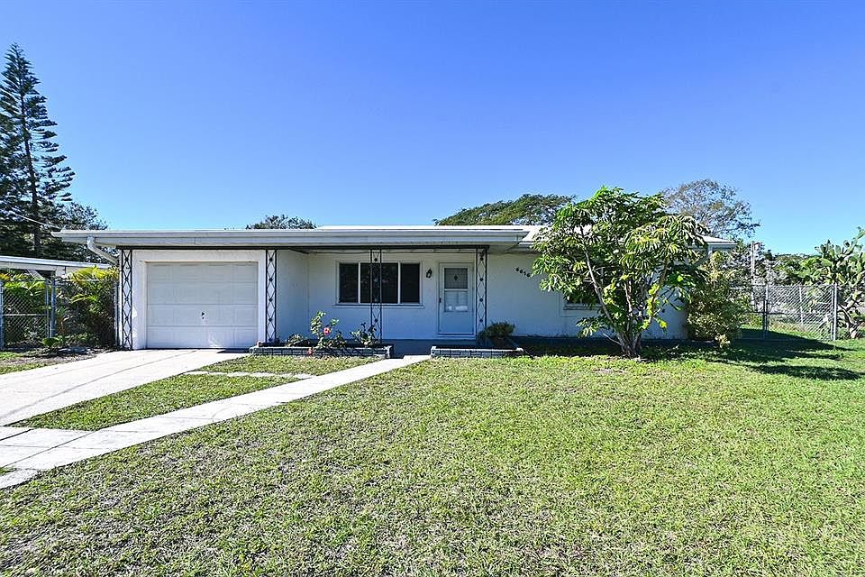 Great opportunity to own in a Non Deed Restricted community with .37 fenced lot. Spacious home with lots of living space. Two bedroom and one bath home with Family and Living rooms plus a bonus flex area. One car garage, inside laundry, new AC 2022 and Roof 2021 are just a few of the great features of this home. Big front yard and an inviting covered front porch make this home very appealing. Enter into the living room and a combo dining area. Just steps to the kitchen where you'll find tile backsplash, a breakfast bar and pantry. Family room is great size with a fireplace and flex bonus area that gives you more options for family fun. Screened, covered lanai is off the back that opens up to large fenced backyard with firepit and shed for storage. Separate laundry area inside of home. One car garage and a small storage area at the back of the garage. Many features of this home like sentricon, new roof, AC and great backyard!!