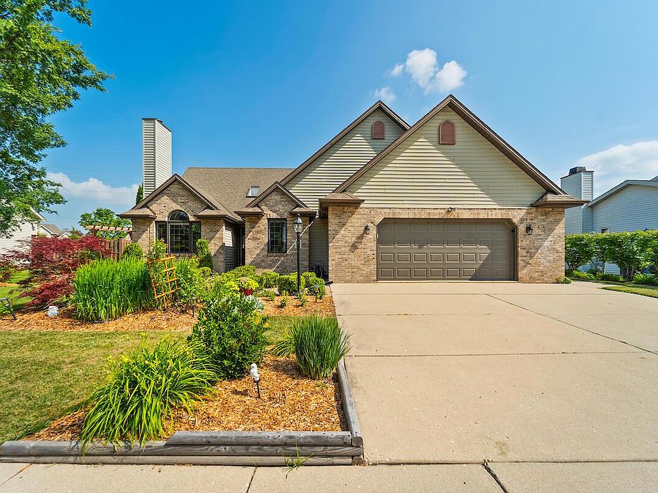 Welcome to this beautiful custom ranch across from Gangler Park-the park has tennis courts, playground, and a picnic shelter! Kitchen features granite counters and stainless appliances. Living room w/ an inviting brick fireplace extending to the vaulted ceiling. The fully finished basement is an entertainer's dream-tiled floors, wet bar with custom wood countertop, and plenty of space to relax or host. Enjoy a large deck and fenced yard with access off the sunny breakfast room. Front yard w/ gorgeous landscaping & in-ground sprinkler system. Major recent updates include: windows & A/C (2020), furnace (2021), water heater & sump pump (2024), dishwasher (2022), fence & garage door (2021). Welcome Home!
