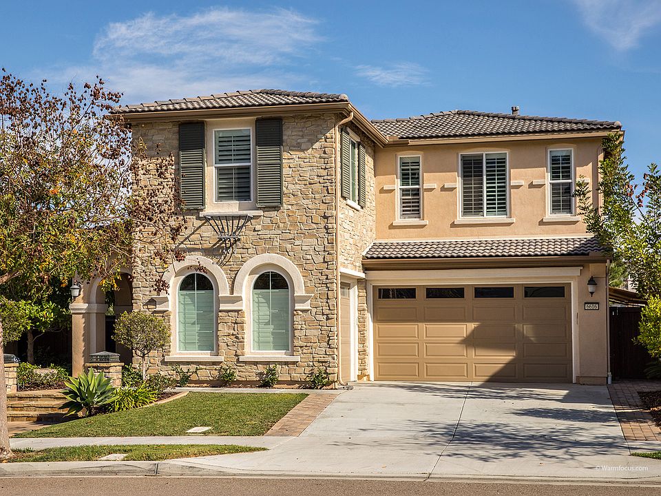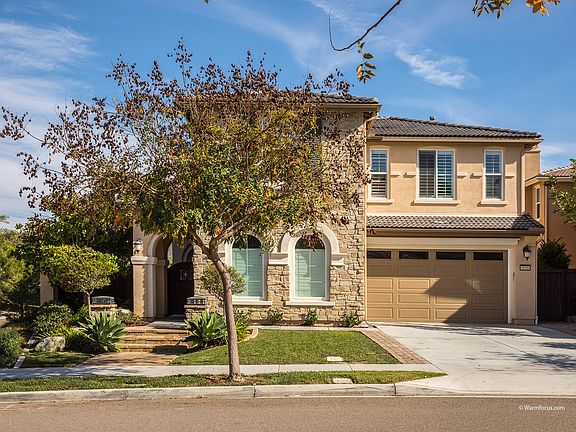 Gorgeous European-style luxury estate in prestigious La Costa Greens! Known for it's superb location and enjoying the renowned Presidio Club. This gorgeous home features owned solar for low electric bills! The open floor plan with volume ceilings, a multitude of windows inviting the natural light, & wood-look tile floors all showcase the spaciousness of this magnificent home. Enter to 20-foot ceilings and an elegant wrought iron staircase with high-traffic carpet. The Chef’s kitchen features granite slab counters, GE Profile stainless double oven, dishwasher, microwave, a 5-burner gas range, a new Whirlpool refrigerator with additional space for a second refrigerator and beautiful wood-look tile. It opens to an expansive family room with fireplace and built-in shelves, and a formal dining room with built-in counter and storage.