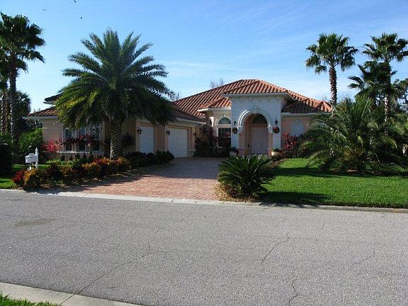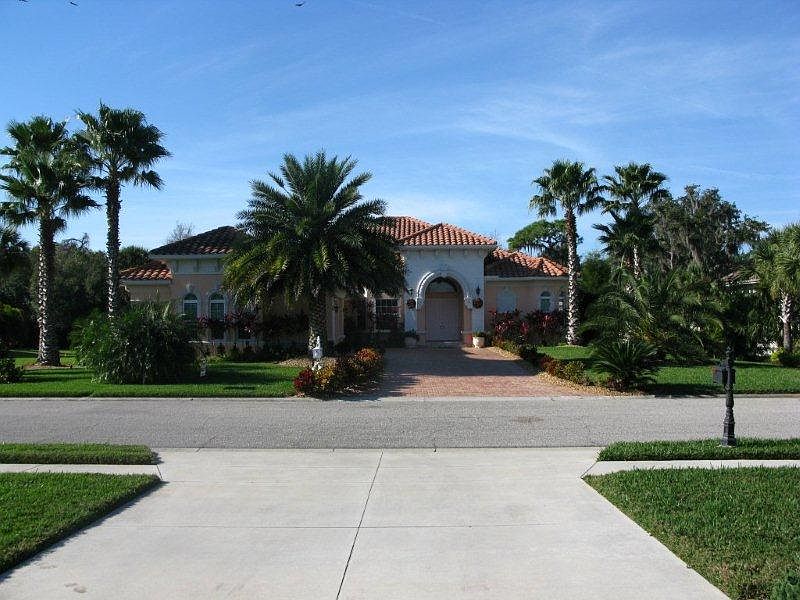 This gorgeous one story 3,200 square feet home with a Mediterranean flair was custom built in 2011 to impress from the moment you see it with all the upgrades you can imagine. The house sits on a large lot with beautiful mature landscaping. A paver brick driveway leads you to a side-entry three-car oversized garage with work space/bench. The massive entrance to this luxurious home is decorated with a pre-cast concrete, stucco bands around all windows making the outside view impressive. Soaring 12 - 14 feet vaulted ceilings carry throughout the whole house with an open floor including a great room, dining room and kitchen. Home offers crown moldings, custom arched doorways and windows (extra casing), architectural columns, hurricane windows including an aquarium window overlooking the outdoors. The huge well-designed gourmet kitchen with a center island, bar and cherry cabinets with custom cherry cabinetry, luxurious granite counters and stainless steel appliances is open into the great room and breakfast room having beautiful view of outdoors. Tiles, travertine and marble flooring are throughout the house except for carpets in bedrooms. You will see granite, marble and travertine in all bathrooms and laundry room. The oowner’s suite with master bedroom, oversized master bath with large spa, double sinks, bidet, upgraded fixtures and walk in shower, 2 walking closets and a small private study provide comfort and luxury. Two guest bedrooms with 2 bathrooms provide privacy for your guests. House offers additional large study/bedroom, beautiful powder room and laundry room with the latest appliances. This home has been designed to entertain with an open floor plan blending the best of indoor/outdoor living. The main living areas open to outdoors living oasis with oversized screened lanai with paver brick, a summer kitchen including bar beneath a covered area, a large pool and a spa with a spillover, all overlooking a private walled setting with mature tropical landscaping. The house is also loaded with energy efficient features such is spray foam insulation, PGT low E impact glass windows and doors, a well for your sprinkle system and solar pool heating in addition to a gas heating keeping your pool well heated most of the year. The house is conveniently located in the Tara Golf and Country Club, Tara Plantation, close to all the shops, restaurants and much more, short 20 minutes-drive to downtown Sarasota or to all beaches.