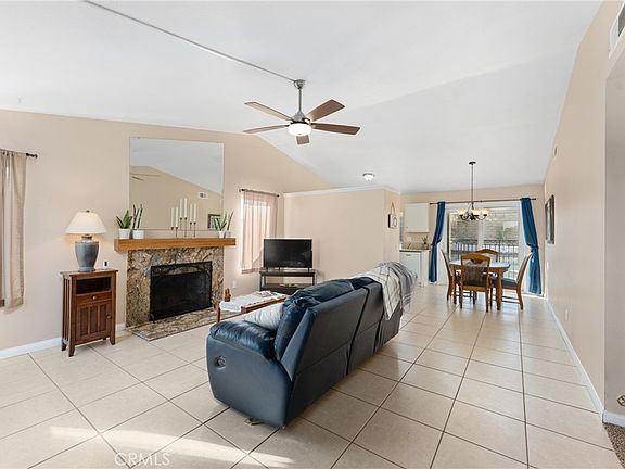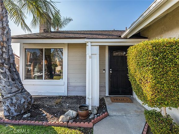 Lovely single level, 3 bedroom, 2 bath home with vaulted ceiling and fireplace is the central focus in light and bright living room with tile floors, open to the dining room with slider to beautiful back yard. Kitchen is a cooks delight with granite counters, refrigerator, stove, microwave, and dishwasher all included. Dual pane windows, ceiling fans, central heat and air for added comfort. Updated bathrooms, and primary suite has slider to private, block wall fenced back yard with gorgeous pool, spa, covered patio, and built in barbcue all ready for your outdoor enjoyment. Direct access Two car garage with washer and dryer, included, and custom built storage cabinets. New oversized water heater with heat pump for quick hot water delivery. The huge driveway extends along the north side of the home with gate and room for RV and/or all your outdoor toys. Perfect location near highly rated schools, Victoria Gardens Mall and convenient shopping and 210 fwy.