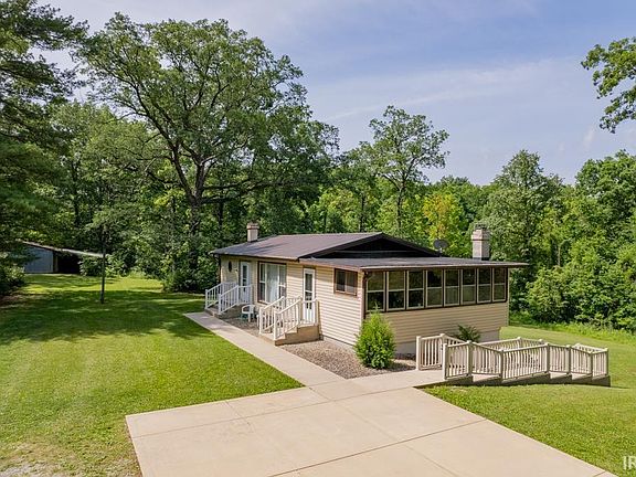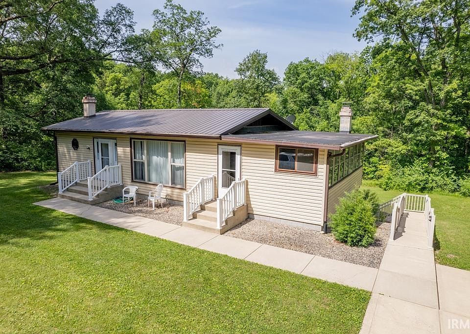 Off the grid. Don't miss the driveway! This stunning 11 acre setting located almost equally between Marion, Upland, Gas City, and Van Buren is completely surrounded by woods & will entice deer and small wildlife with the creek running through it. The lower walk out has a full length concrete patio and peaceful meadow. The front door accesses the living room, 2 bedrooms and a bath. The lower level boasts a den, kitchen, 2 bedrooms, additional full bath and a wood burning stove. The mechanical lift chair remains. There is a second front door to a room the owner used as a workshop that houses an additional wood burning stove and could serve many uses. The metal roof was recently replaced. The barn is larger than the dimensions which do not include the stalls or carport area. Radon mitigation system in place. A true private retreat.