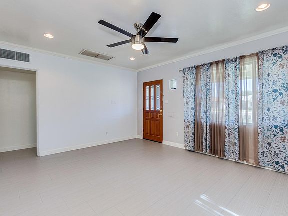 Fantastic Ranch Style Home beautifully maintained w/great curb appeal & move-in ready. Soothing interior palette, upgraded ceiling fans, stunning wood plank tile floors throughout, & lots of natural light. Center kitchen island, granite counters, SS appliances, farmhouse sink, pantry, & wood cabinets w/stylish hardware. Spacious laundry room w/storage cabinets. Plush carpet in all bedrooms, ample closets, & upscale bath. Huge backyard boasts covered patio, green landscape, & RV Gate! This is a must see gem!