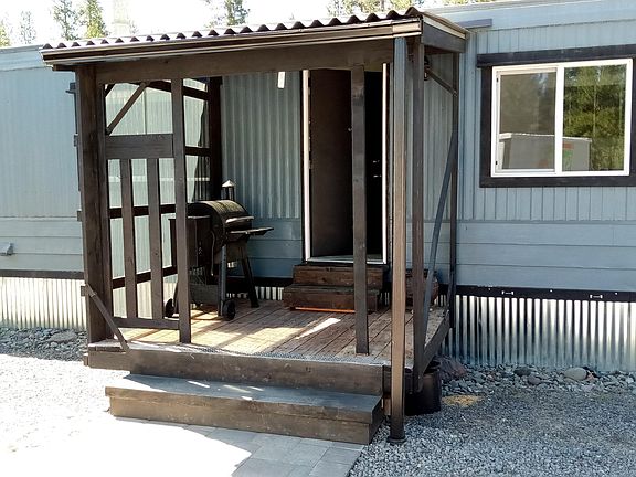 Multi-generational living opportunity! Beautifully remodeled 2 bd/1 ba mfg'd home AND 3 bd/1 ba cabin with finished pine ceiling, plank floors, wood stove. Must see to appreciate. Mfg'd home has tie downs and engineering certs, well appointed kitchen with tons of storage, wood stove and finished log mantle, wide hallway includes washer and dryer. Newer membrane roof, freshly painted, neatly landscaped. Storage sheds and in ground green house flourishing with greens, chicken area and outside garden. Large backyard with lawn. Entire property is fenced and gated. Extra 400 gallon water storage, carport parking, new stone walkway, shipping container storage painted to blend with other buildings, just a lot to see. Covered storage includes a supply of firewood. Financing options available, call Debra Sweistris @ American Pacific Mortgage debra.sweistris@apmortgage